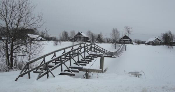 А вот этот мост, являющийся одной из визитных карточек города, если к вопросу подходить со всей строгостью - не совсем Олонецкий. Он находится в одном из пригородов Олонца - в деревне Верховье.