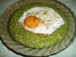 Вот в таком варианте это блюдо получилось у меня. Федор сильно плевался от замороженного шпината, поэтому я взял свежий салат.