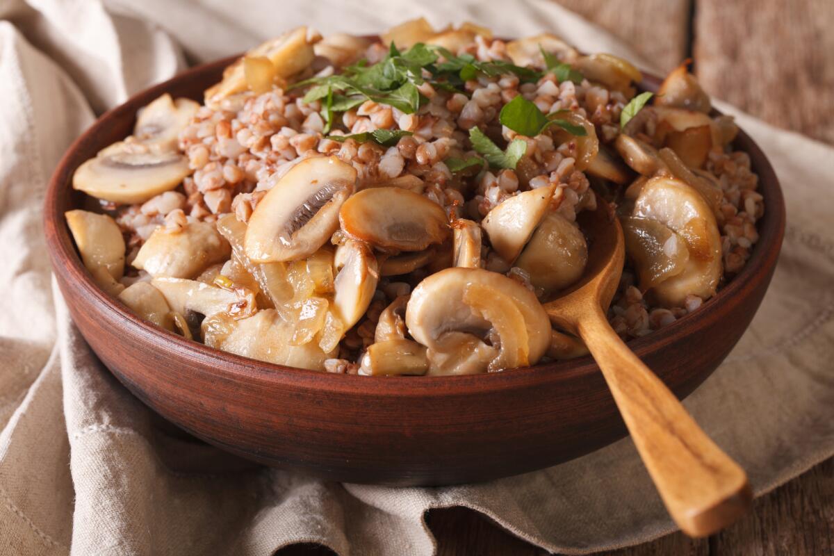 - Ингредиенты: на 2 стакана гречневой крупы — 300 г свежих грибов, 200 г репчатого лука, 4 стакана воды, 2−3 ст. ложки масла, соль по вкусу.