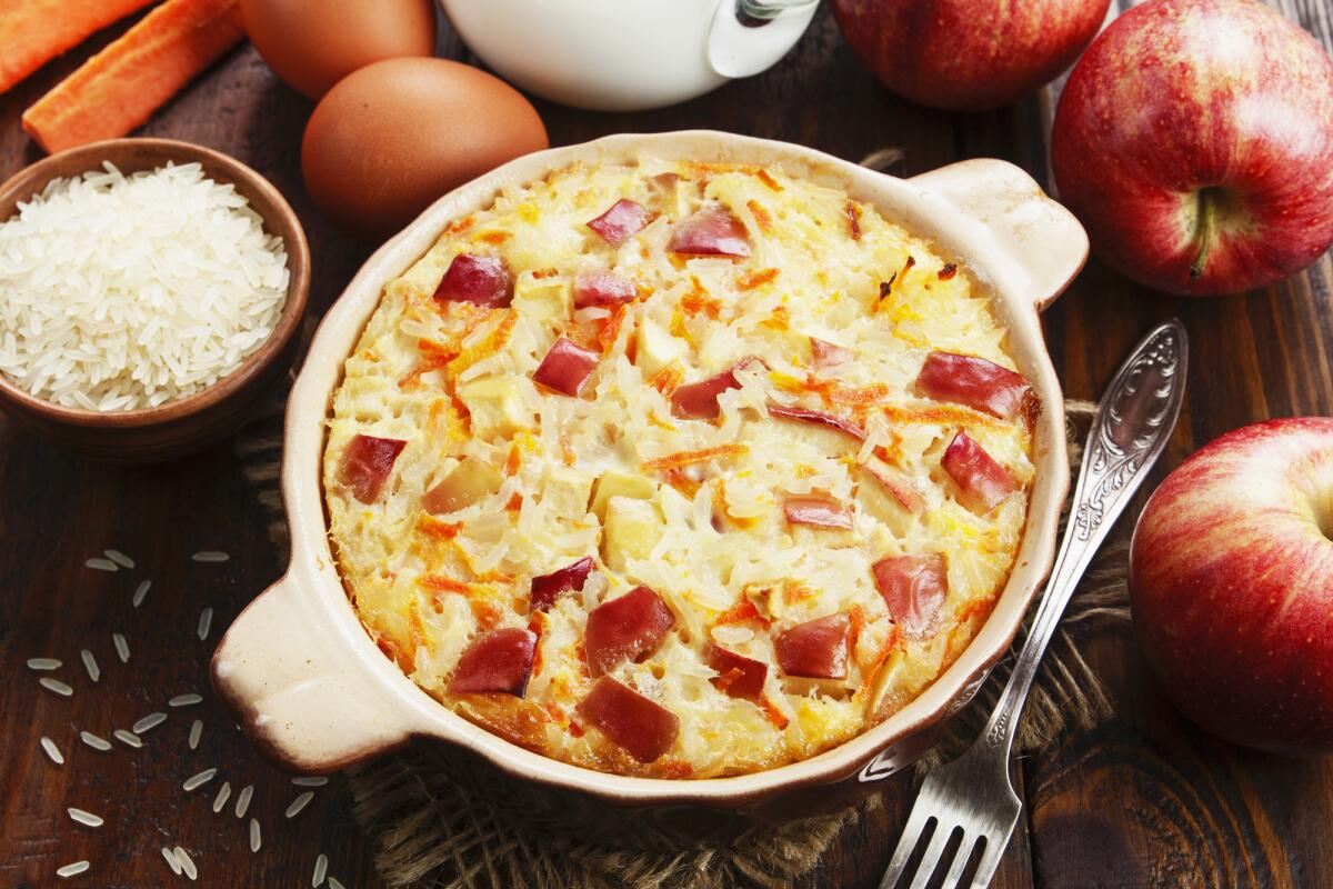 - На 1 стакан риса — 2 яблока, полстакана изюма, щепотка корицы, 2 ст. ложки сахарного песка, 2 ст. ложки масла.