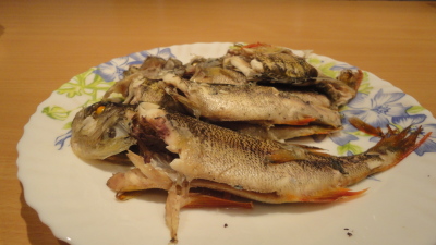 Рыбу, из которой сварена уха, в карельских домах подают на стол отдельно от её жидкой составляющей. Сначала съедается всё то, что разлито по тарелкам, а уже после этого доходит очередь и до рыбы, которая обычно стоит по центру стола на большом плоском блюде. Потянулся со своего места и взял ту, что поближе. Разобрал её, а косточки и шкурку с чешуёй сложил в уже пустую, освободившуюся после ухи тарелку.