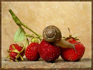 Клубника турецкая. Бедная улитка, сколько ей пришлось испытать путешествуя + кипяток + два дня в холоде...