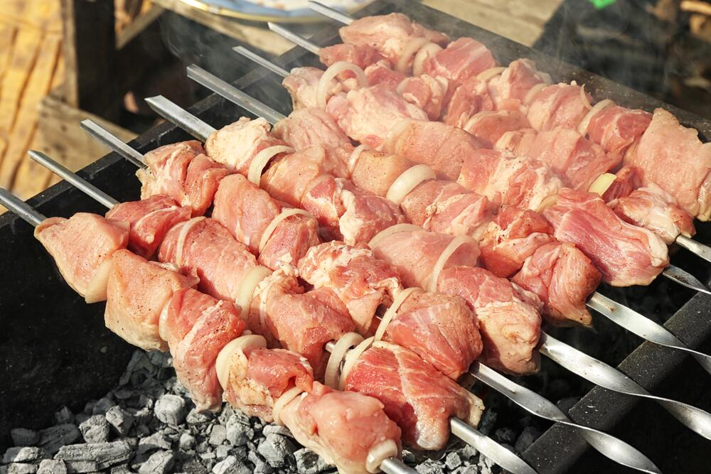 Мясо молодого барашка должно быть с костями, а в обращении со свининой — свои хитрости. На куске не должно быть много жира: сало оплавится, начнет подгорать, из-за этого мясо приобретет неприятный вкус.