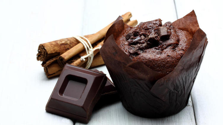 5. Растопить на водяной бане шоколад с добавлением молока. Каждый маффин окунуть в шоколад и украсить фундуком.