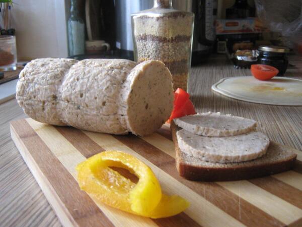 Ну, а уже утречком… Вскрываем упаковку, отрезаем кусочек и мммм… Наслаждаемся вкусом приготовленной своими руками колбаски. По консистенции это скорее похоже на суфле — нежно, ароматно, вкусно!