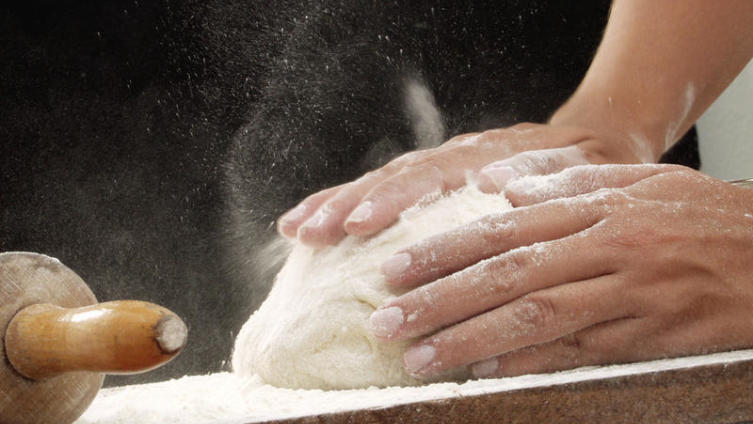 Через 2−2,5 часа после смешивания в тесто, если начальный рост силен, нужно снова подмешать муку, посыпать ею поверхность теста.