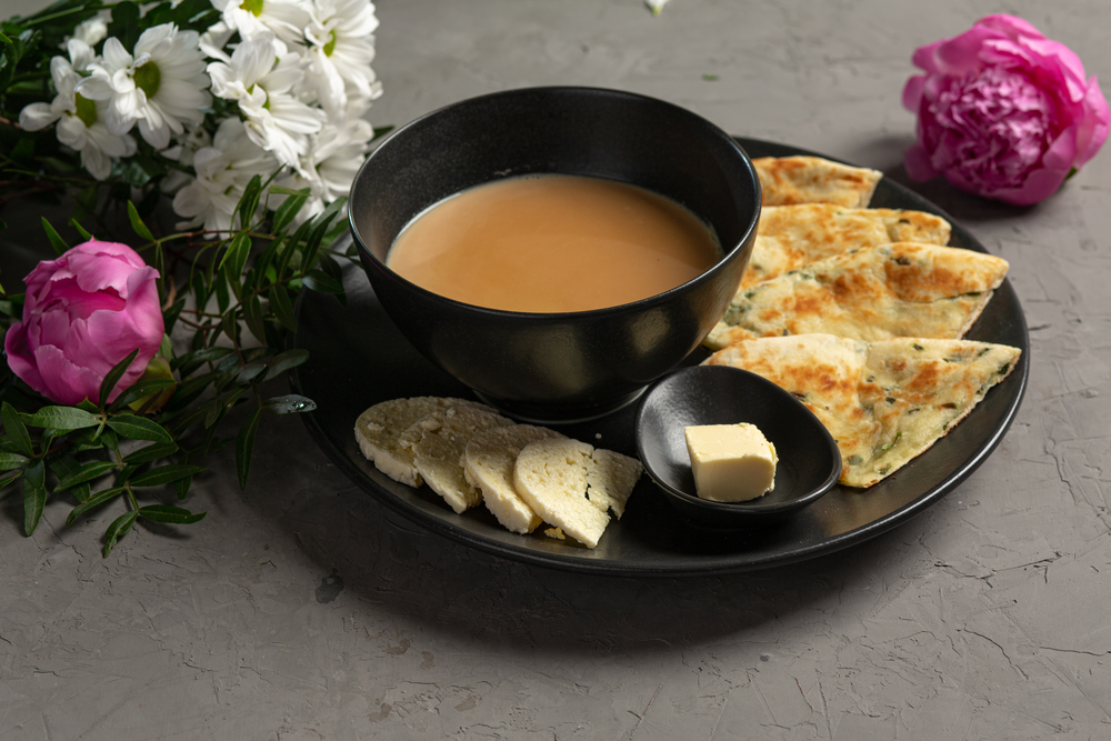 Мой брат читал книгу о биографии Лобсанга Рампы, тибетского ламы. Там тоже варят крепкий чай с сливочным маслом из молока яка, и с горстью овсяной муки. Кажется "цампа" называется.