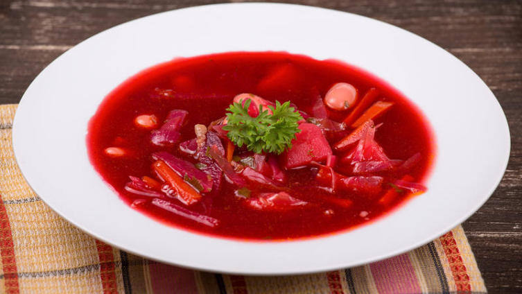 Но бабушка не обращает на него ни малейшего внимания. Она режет на крупные куски большую свеклу и и кладёт её вариться вместе с возвращаемыми в чугунок косточками. Эти кусочки, которые не дадут картошке развариться, в борще будут светлыми. Второй большой клубень свёклы режется крупной соломкой, обжаривается на сале вместе с луком, морковью и ломтиками зелёного помидора (если борщ летний). После чего туда добавляется томатная паста или помидоры и кольца белого корня петрушки, черпачок бульона, столовая ложка сахара и соль. Третий клубень свёклы обязательно маленький — не больше теннисного мячика. Его бабушка трёт на мелкой тёрке, смывает с неё холодной водой и выливает эти кровавые чернила в почти готовый борщ.