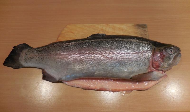 Первым делом берем рыбу. Желательно свежую. Самый крайний случай — охлажденную. Мне в этот раз попалась форель. Два кило плюс.