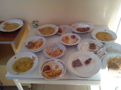 Не менее впечатляла "подача" - с окриками "не хватай ничего со стола, сама подам", "куда ложки потащили", "хлеба только по одному кусочку" и т.п. При чем сначала страшно жадничали в порциях, а после обеда выбрасывали остатки еды в бак.
