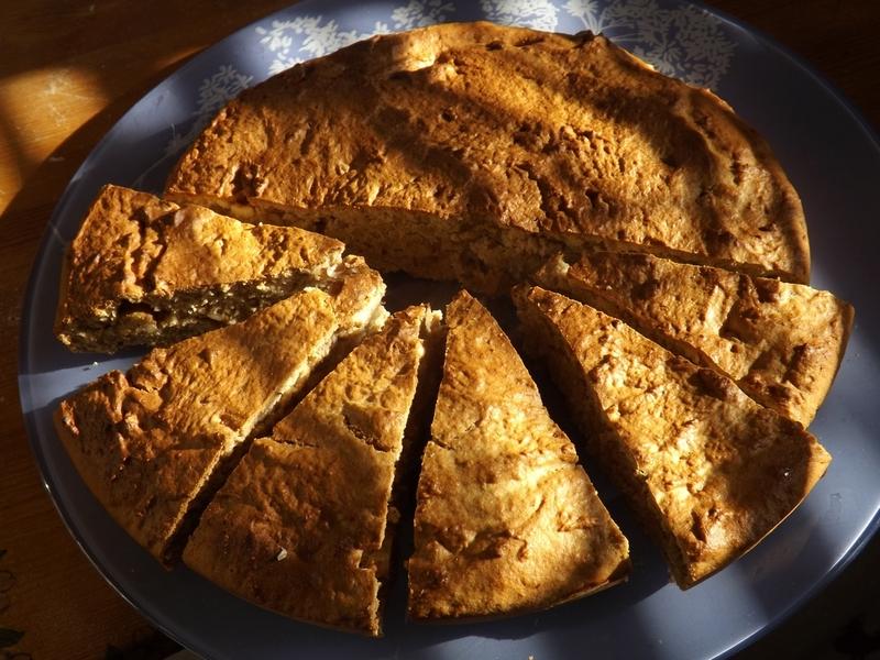 Тесто, кстати, может отличаться по составу, и мы пробовали готовить разные варианты. Больше всего понравился такой рецепт: 0,5 стакана сметаны, 2 яйца, 1 стакан сахара, крупная щепотка соли, 2/3 чайной ложки гашеной соды, мука — смешать до довольно густого, но еще льющегося теста, 2−3 яблока, масло для формы и манка. Форму обмазать маслом, обсыпать манкой и выложить на нее кусочки яблок, а сверху залить тестом из остальных ингредиентов. И выпекать примерно полчаса в разогретой духовке. В этом рецепте некоторые предпочитают заменять сметану кефиром, но тогда пирог получается совсем другой.