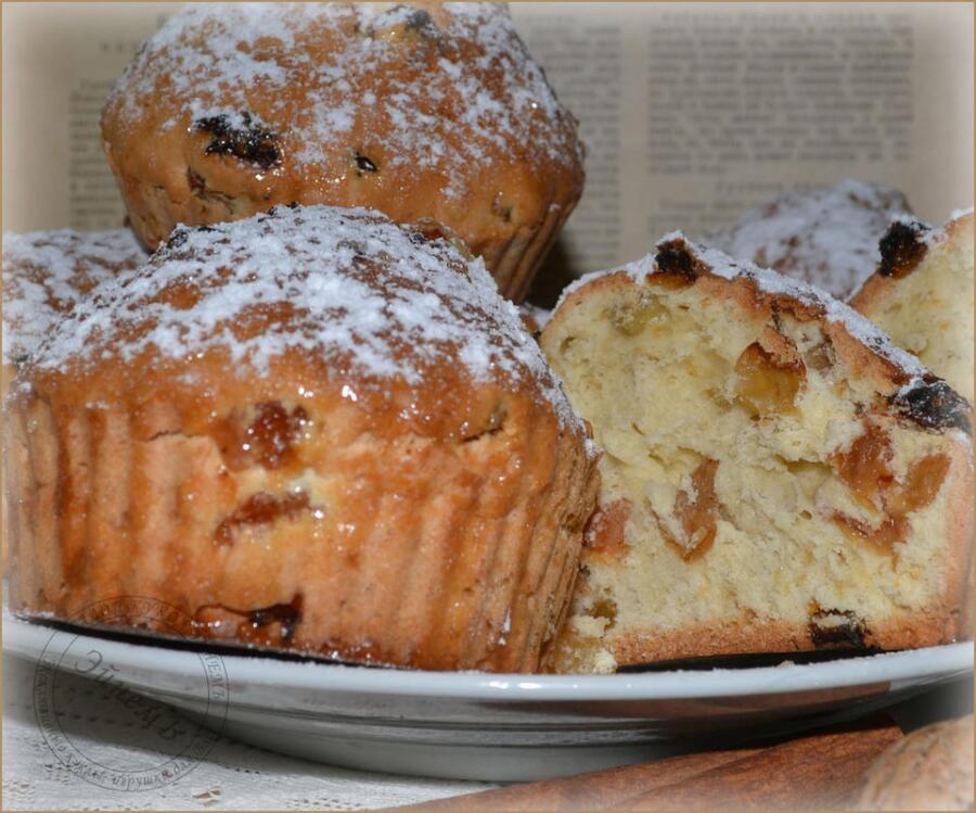 Выпекать в предварительно разогретой духовке на верхнем и нижнем прогреве 25 минут при температуре 180 градусов. Готовую выпечку посыпать сахарной пудрой. Я предварительно смазываю поверхность кексов лимонным сиропом.