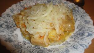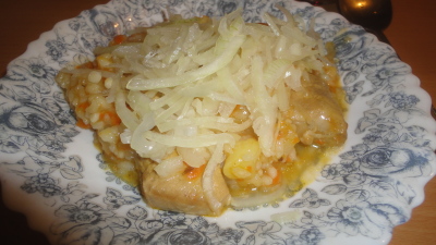 Учитывая вот эти две особенности блюда — припускание, а не обжаривание лука, и выкладывание его поверх горячей шавли, я бы сказал, что лицо плова, его изюминку, создаёт рис. А у шавли то же самое делает лук.