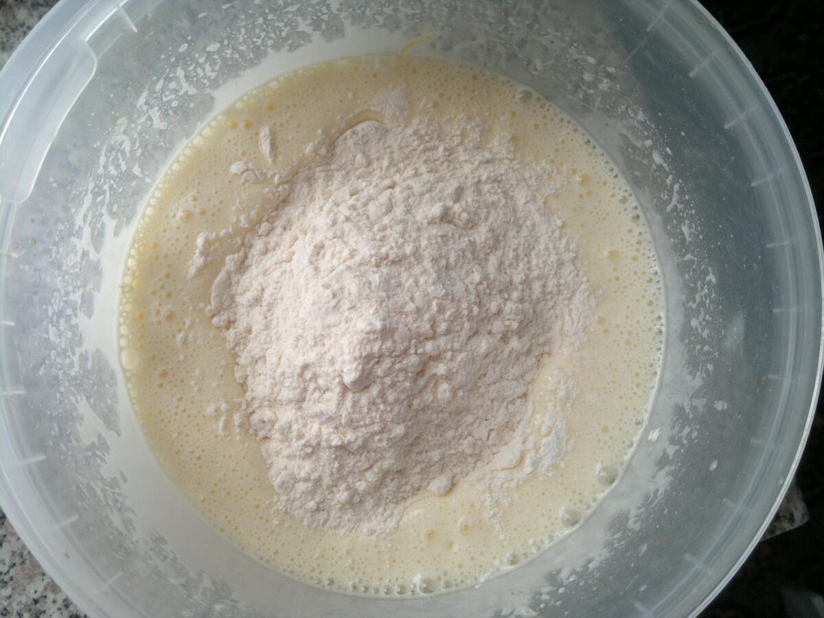 - В рецепте здесь указано: 2 стакана муки. Но можно взять любое количество данного ингредиента. Главное, сделать так, чтобы тесто в конечном итоге получилось по консистенции похожим на густую деревенскую сметану.