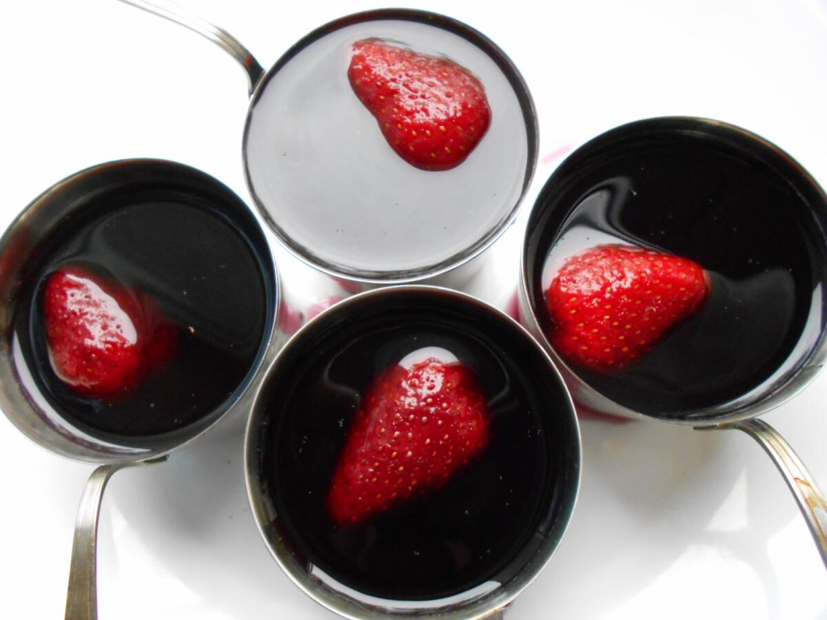 Убрала в холодильник — и через пару часов желе готово. Окунула формочку на несколько секунд в горячую воду и перевернула желе на блюдце.