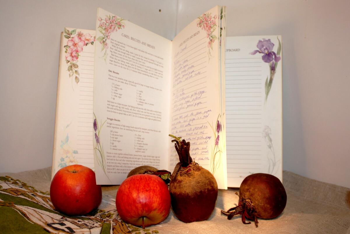 Затем в моём шкафу стали появляться книги, написанные для тех, кто хочет уменьшить жирность в диете и максимизировать питание. Дегустация этих сладких угощений тоже не вызывала восторга. И вот однажды, совершенно случайно, помогая знакомой разбирать завалы в сарае, я наткнулась на записную книжку с «бабушкиными рецептами». Знакомая разрешила её забрать, вопросы кулинарии её не интересовали. Книга сама по себе шедевр печатного искусства. Изданная в 1987 году с художественными иллюстрациями «Alison Holst’s New Zealand Recipe Notes», она хранила между страницами маленький листок «Grandma's beetroot chocolate cake» (бабушкин свекольный шоколадный кекс). Листочек был настолько ветхим, что вскоре рассыпался. К счастью, я успела переписать оригинальный рецепт.