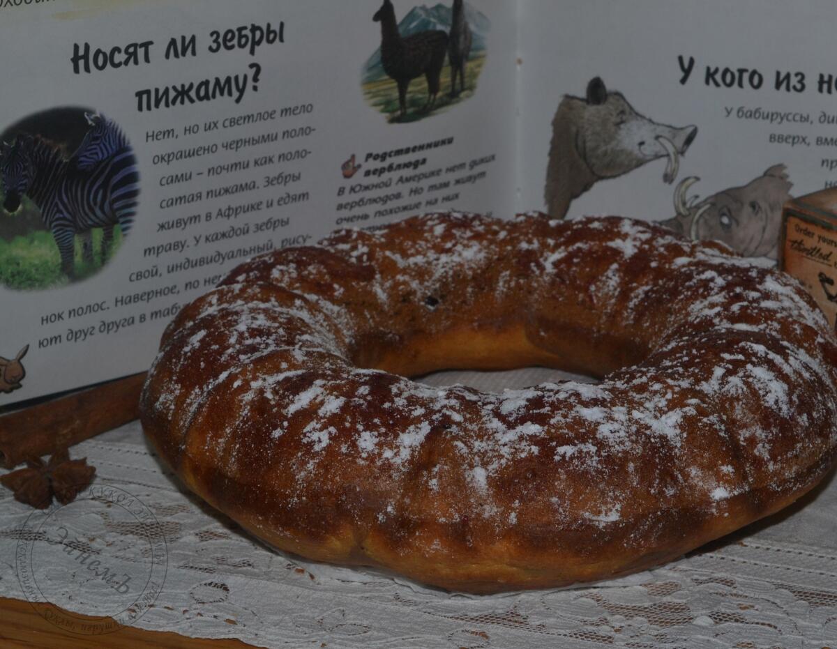 Печь при температуре 175−180 градусов в предварительно прогретой духовке ориентировочно 45 минут (я пекла одновременно на нижнем и верхнем обогреве). Готовый пирог слегка посыпать сахарной пудрой.