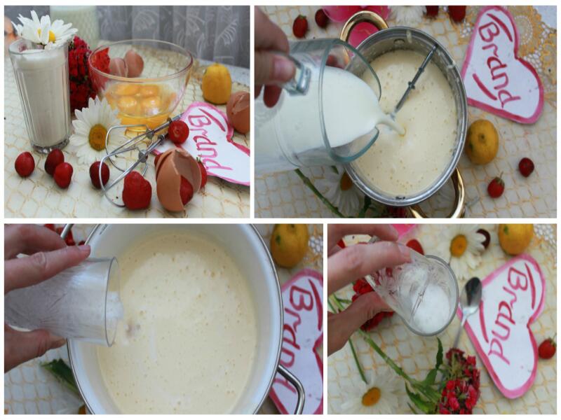 Пока выпекаются коржи для торта или когда они будут уже все готовы, необходимо приготовить крем. Крем для «Негритенка» можно выбрать любой. Но в нашей семье он полюбился с заварным кремом.