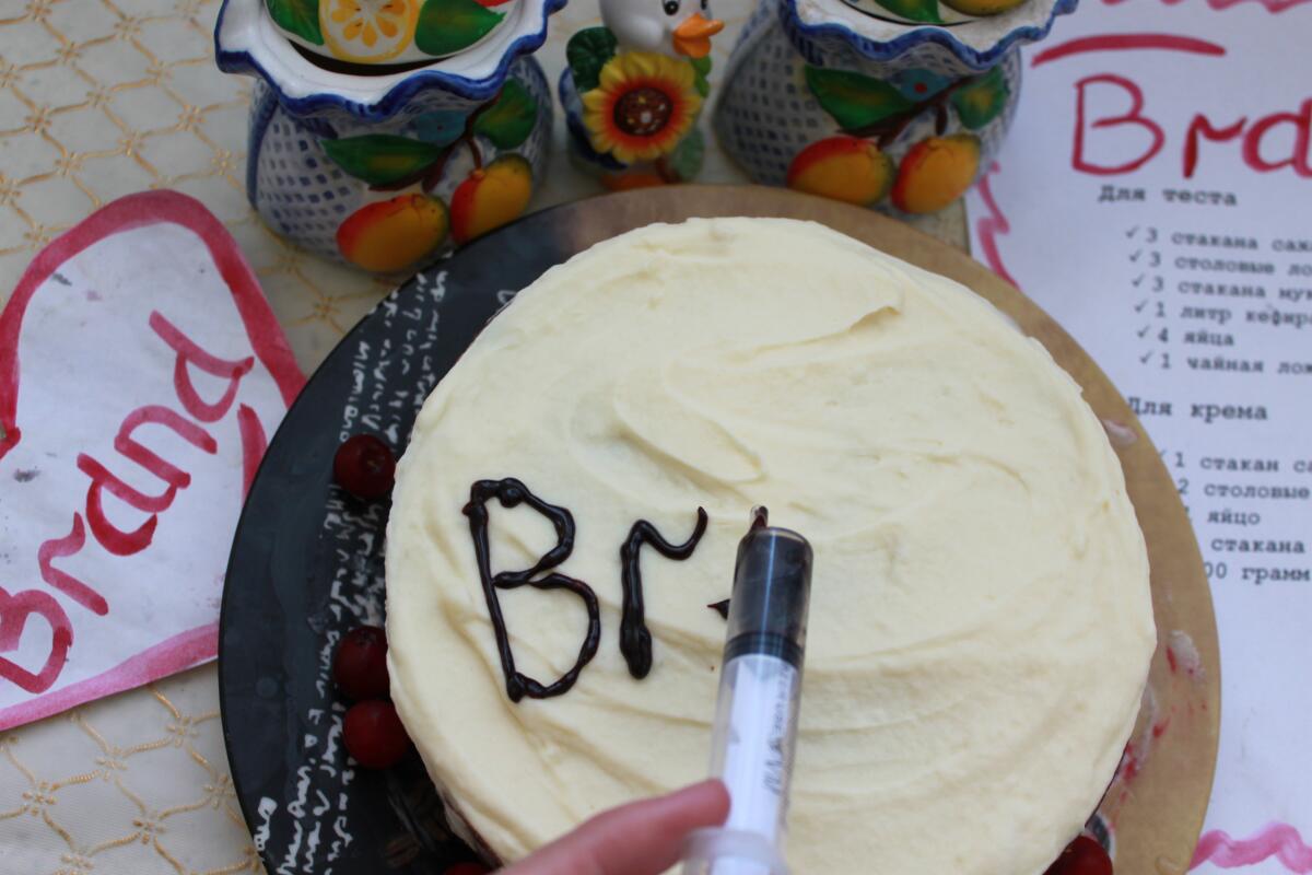 Можно украсить торт надписью или рисунком. Для этого необходимо приготовить шоколадную помадку.