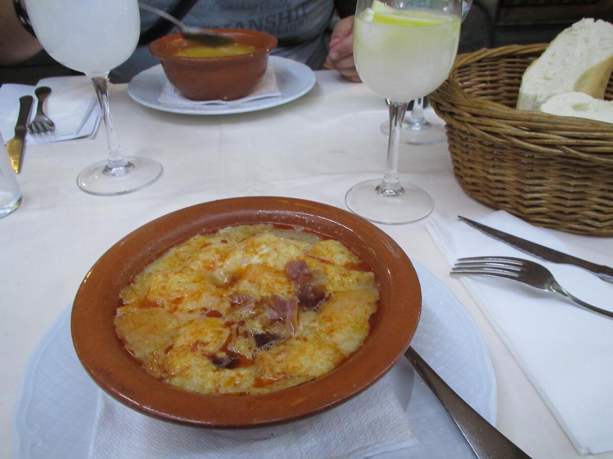 Sopa de ajo — чесночный суп, который состоит из обжаренного хлеба и чеснока. Все это заливалось водой и в конце варки добавлялись взбитые яйца. И опять блюдо небогатого стола стало блюдом национальной кухни.