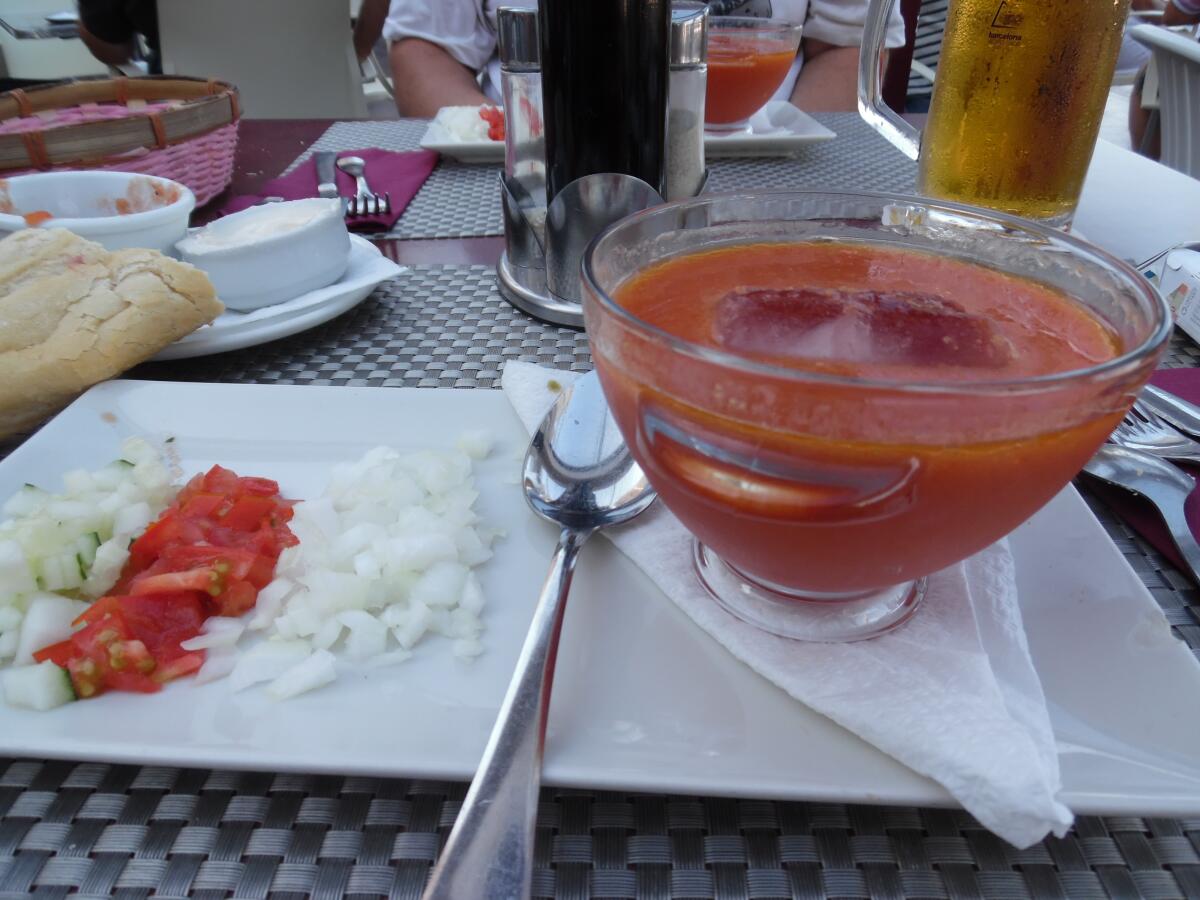 Но главное, что получилось с холодными томатными супами — это знаменитый испанский суп гаспачо. Во всей своей красе.