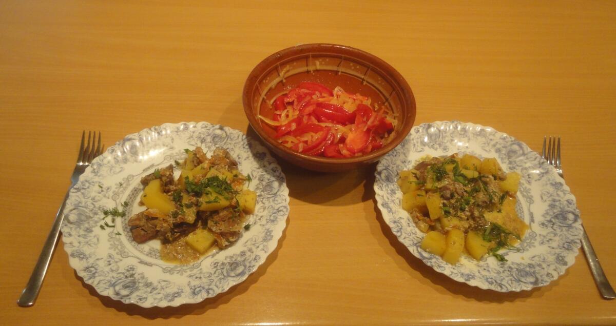 Моем, режем, чистим, шинкуем, рубим. А тем делом… Поплыл, поплыл по кухоньке аппетитный запах! Значит, готово всё. За стол, уважаемые!