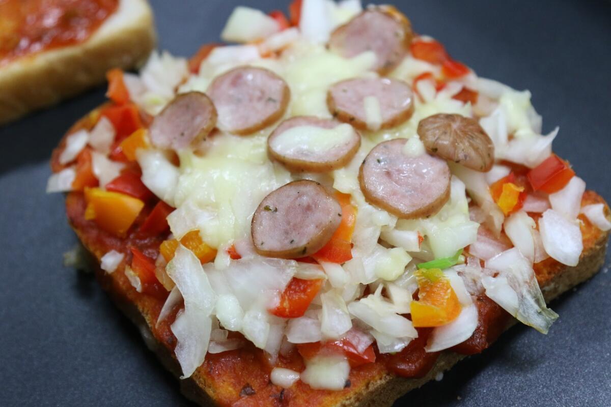 Ингредиенты смешиваются до получения однородной массы, тесто выливается на сковороду, смазанную растительным маслом. Сверху выкладывается начинка. Завершающий штрих — тертый сыр. Сковорода ставится на огонь и накрывается крышкой. Как только сыр расплавился — пицца готова к употреблению.