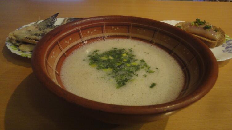 Да! Перед тем как влить в тарелку взбитое яйцо, хребты из неё я выкладываю на отдельное блюдо. Рыбу, сваренную в ухе, в Карелии едят после того, как покончат с первым. Вот после него можно приступать и ко второму…