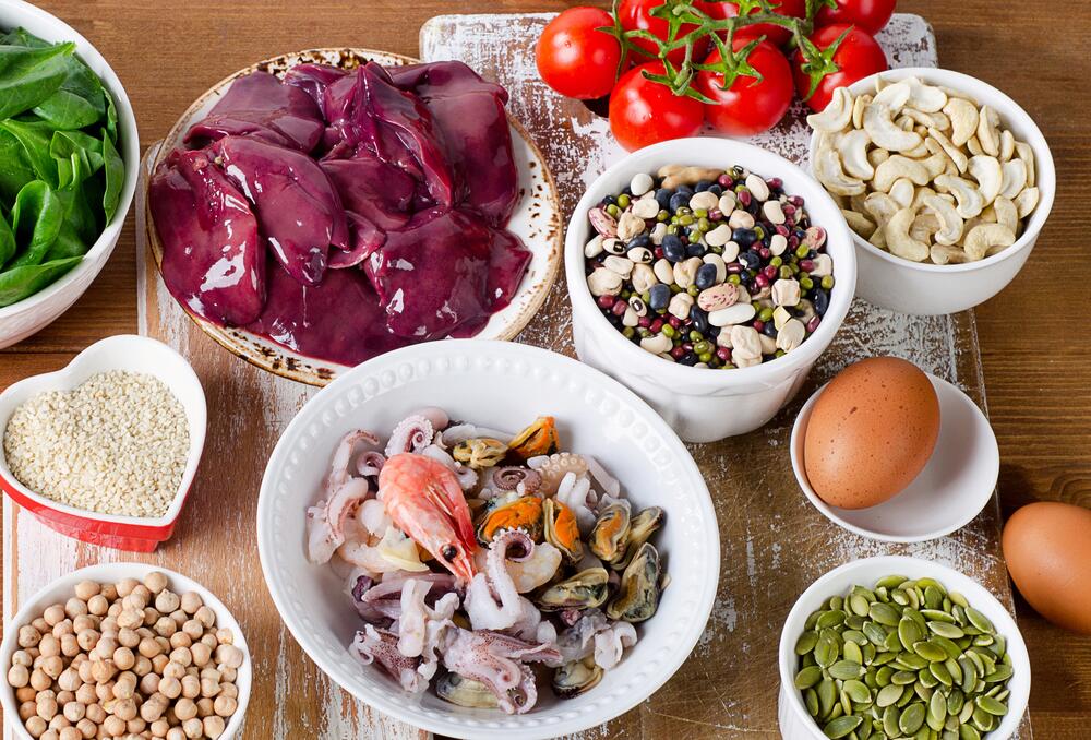 Цинк в изобилии содержится в постном мясе, устрицах, цельном зерне и семенах, орехах. Источники магния — орехи, бобовые, зерновые, зелень и соя. Железо поступает в организм в основном с мясом и субпродуктами, в особенности с печенью. В небольших количествах минерал можно встретить в орехах, зерновых и шпинате.