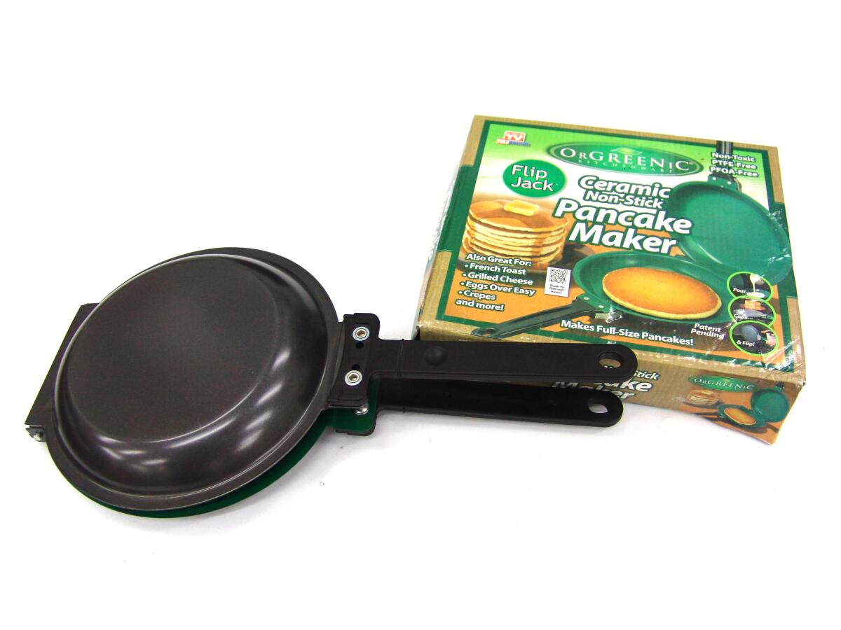 Для выпекания панкейков американцы изобрели даже специальную сковороду, состоящую из двух половинок, плотно прилегающих друг к другу, и имеющую длинные ручки. В нижнюю сковороду наливается тесто и закрывается верхней сковородой. Через минуту сковорода переворачивается — и таким образом пропекается другая сторона.
