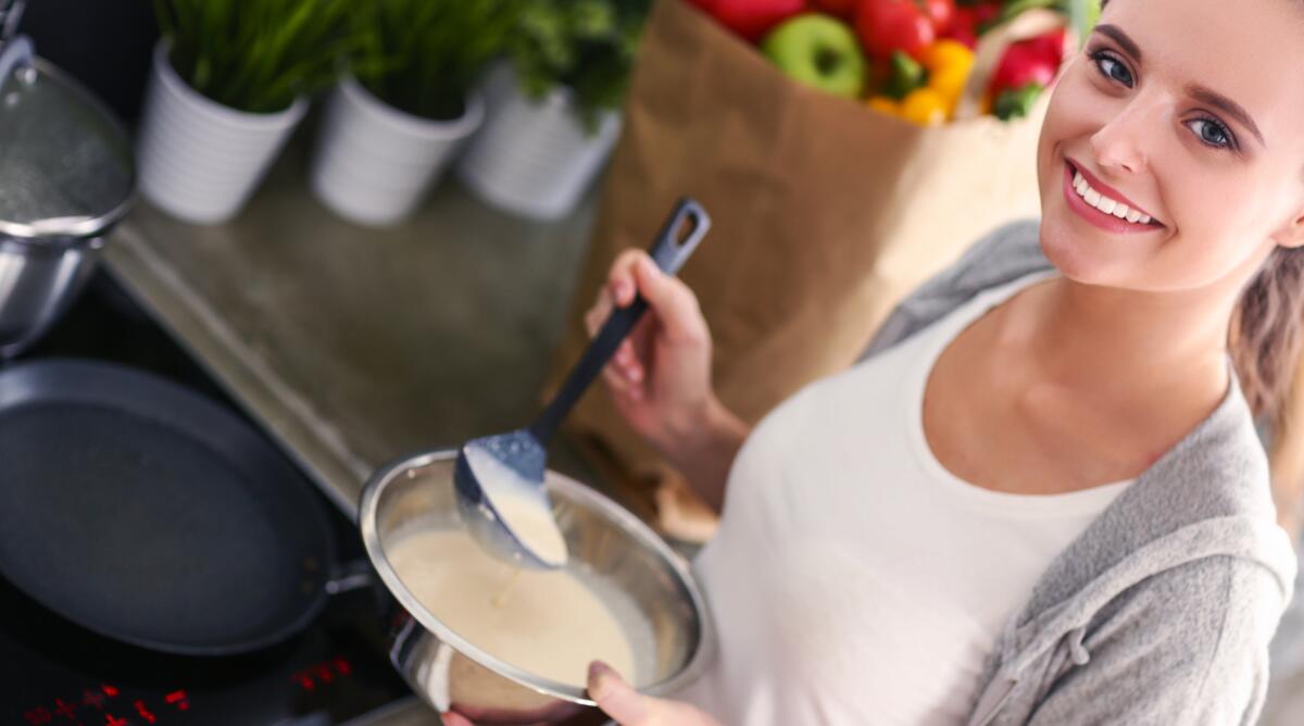 - Для крема: 1 стакан молока, 1 яйцо, 2 ст. ложки муки, 4 ст. ложки сахара, 2−3 ст. ложки сливочного масла. Можно взять пару ложек какао — получится заварной шоколадный крем.