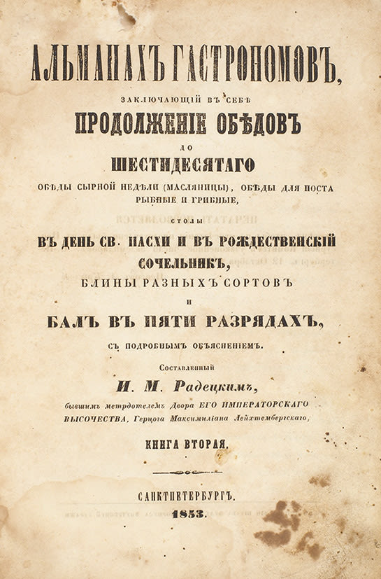 Сборник содержит описания 90 обедов, а также особенности праздничного стола во время балов, религиозных праздников.