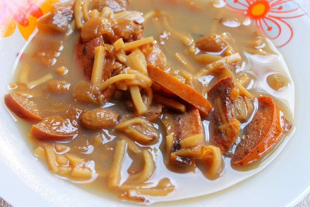Вымыть теплой водой чечевицу, положить в кастрюлю, туда же отправить корни петрушки, моркови, сельдерея, лука и рыбную голову от осетра, налима, сома или щуки. Вскипятить и поставить на печь, чтобы упрело до мягкости. Потом протереть сквозь сито, развести водой и кипятить на легком огне, снимая пену до тех пор, пока не станет чистым.