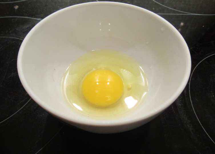 Итак, берем подходящую по объему небольшую емкость, аккуратно, чтобы не повредить желток, разбиваем скорлупу и вливаем в нашу пиалу сырое яйцо. Ставим его в микроволновую печь и включаем её.