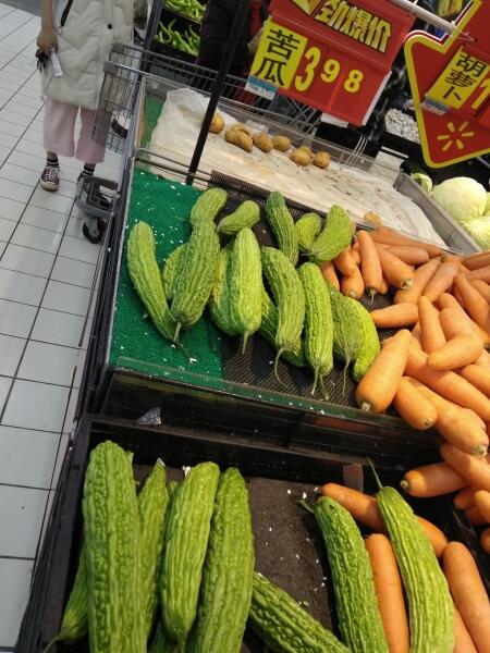 В Китае он довольно дешёвый, вот такой плод вышел в 25−28 рублей по курсу на день покупки. Продается и на овощных развалах, и в супермаркетах. Овощ нежный, в домашних условиях хранится недолго даже в холодильнике, поэтому смысла закупать впрок нет. Когда пропадает — становится более мягким, шкурка бледнеет.