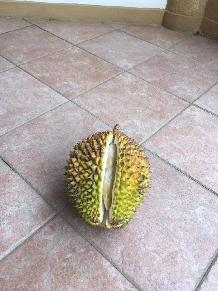 Да, действительно, аромат специфический. Дуриан, конечно, экзотический и запрещённый к провозу в самолётах и на прочем общественном транспорте, но всё равно пахнет…