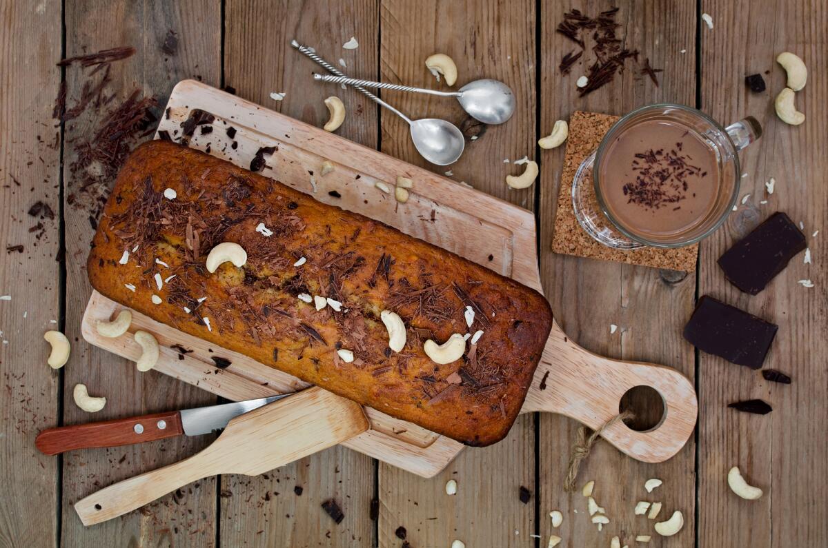 - Для его приготовления надо взять: 2 небольших банана, 2 яйца, 100 г сливочного масла, 100 г чёрного шоколада (или 2 столовые ложки какао и 2 столовые ложки сливок), 100 г муки, 2−3 столовые ложки сахара, 1 чайную ложку разрыхлителя.