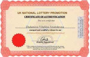 Отличительной особенностью этого вида лотереи является то, что мнимым победителям предлагают сперва внести на счета мошенников расходы по уплате банковского перевода, оплате гербового сбора, получения именных сертификатов с голубой каемкой и прочей дребедени.