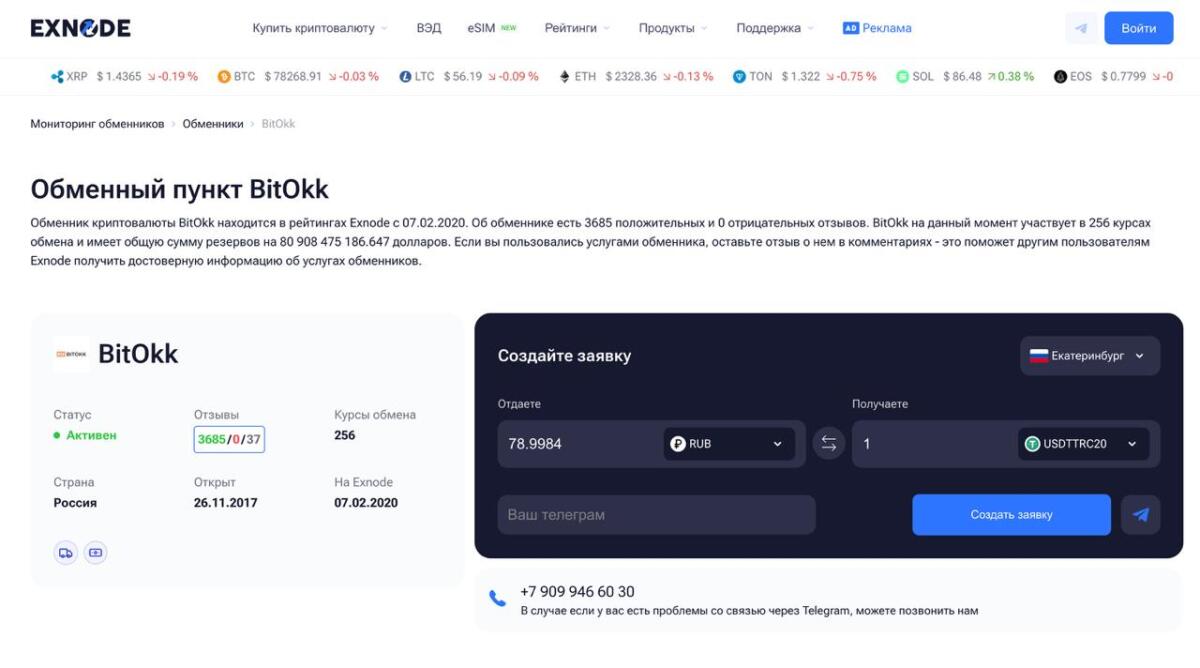 BitOkk часто рассматривают как сервис для тех, кто работает с более крупными суммами и хочет заранее согласовать детали сделки с менеджером. Основное преимущество сервиса — сопровождение клиента на каждом этапе: от подачи заявки до завершения транзакции. Обычно курс также фиксируется заранее, а условия обмена обсуждаются до приезда в офис.