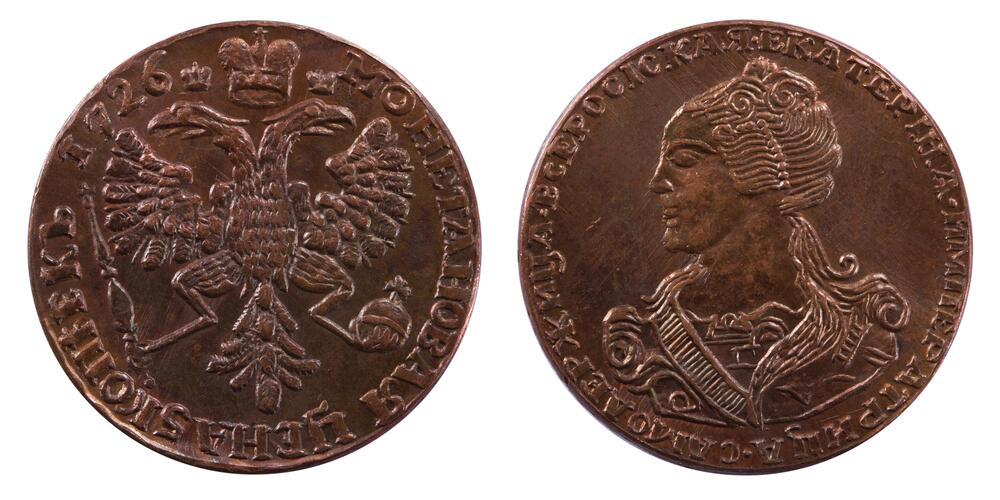 В 1704 начали чеканить медную копейку и серебряный рубль.