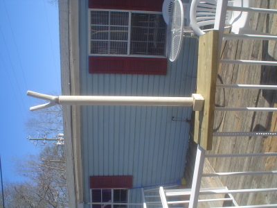 Главная фишка - ручка рогаткой; держишь трамбовку, как быка за рога. Внутри трубы должны быть ш/подшипники, но у меня щебень и то удар пролучается припечатывающим. Идея с шариками из древнего "ИР"а.