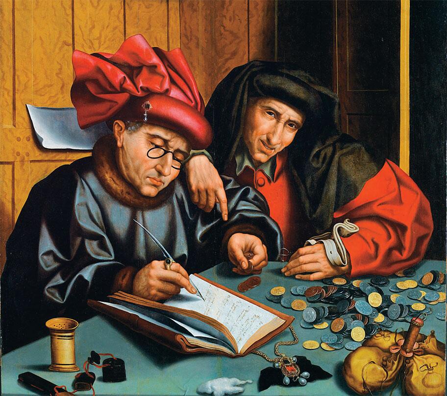 Шло время. В Средние века Европа была разбита на множество разных государств. Все государства чеканили свои деньги. Все эти монеты были разного размера и веса. Да и серебро в них было очень разного качества. Для обмена «иностранных» монет на те монеты, что ходили в данном государстве, нужны были доверенные люди, которые должны были и уметь считать — пересчитывая, сколько монет, весом по столько-то долей унции перевести в монеты своего государства, весящие по столько-то долей унции, знавшие все ходячие монеты и как они друг в друга переводятся. Например, что марка делилась на 8 эре, каждый эре — на 3 эртуга, а каждый эртуг стоил от 8 до 20 пфеннигов, в зависимости от той местности, где был отчеканен…
