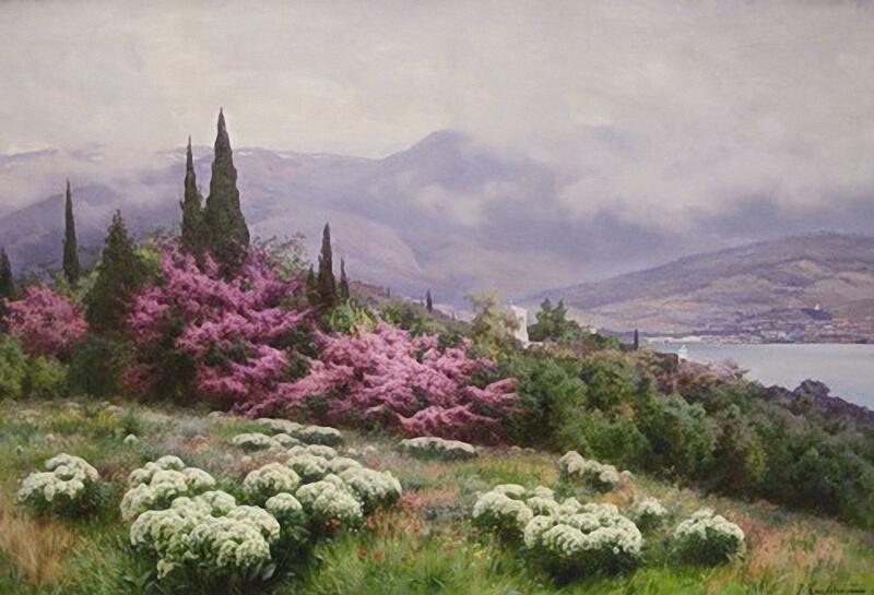 На картине украинского художника Валерия Григорова «Ялта. Иудино дерево» изображён цветущий церцис: небольшое дерево словно покрыто ажурной сиренево-розовой шалью.