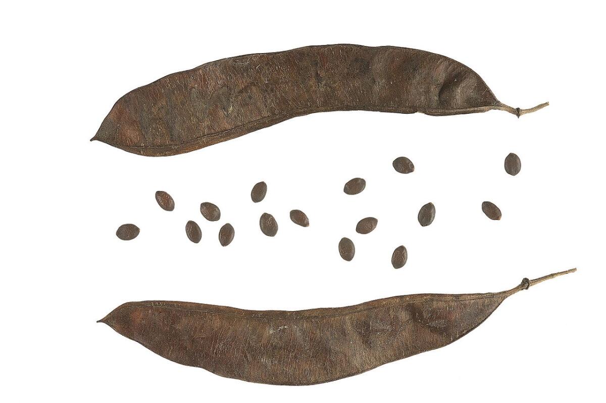 После цветения дерево украшается гроздьями стручков, длина которых достигает 10 см. К осени зелёные стручки приобретают тёмно-бордовую или коричневую окраску. Стручки не опадают всю зиму, и часто на дереве можно одновременно видеть и цветы, и прошлогодние плоды.