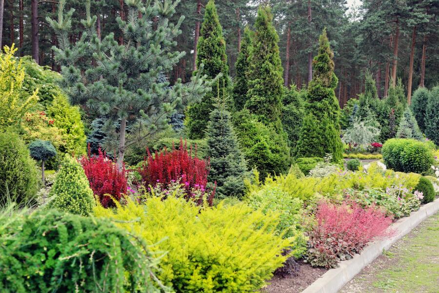 Необычный вид хвойным посадкам придает и характерный внешний вид растений — оттенки хвои и даже цвет коры самого ствола и ветвей. Сделать хвойные деревья еще более выразительными можно при помощи формирования их кроны.