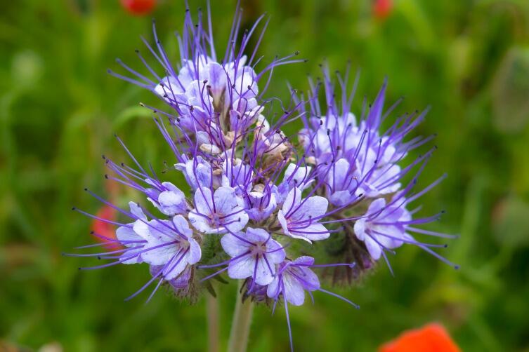 Фацелию нередко сочетают в цветочных композициях с другими декоративными растениями. Ее гармонично дополняет эшшольция, агростемма, лен.