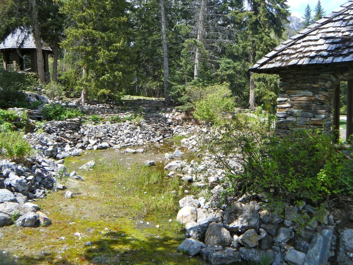 Между камнями основания располагают куртины небольших растений, следя, чтобы они не загораживали друг другу свет. Сначала обычно высаживают деревья, которые создают затенённые островки, затем — стелющиеся вдоль земли растения.