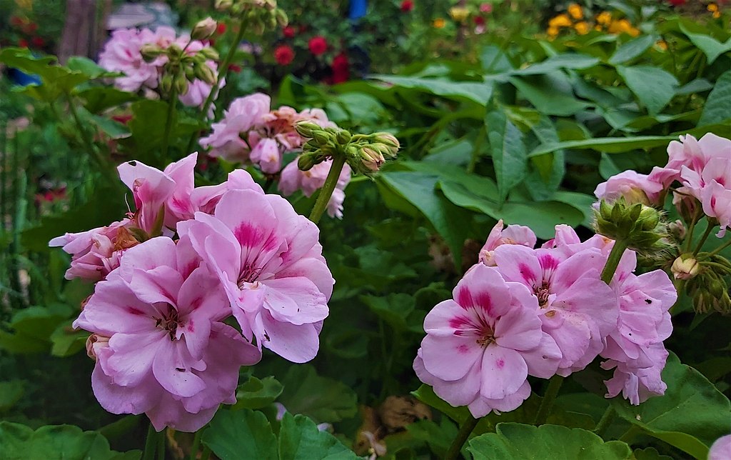 - Герань голубая — один из многочисленных видов этого растения родом с Кавказских гор. Она украсит рокарий ярко-синими цветами. Её можно отнести к низкорослым растениям, поскольку стебли не превышают 20 см высоту.