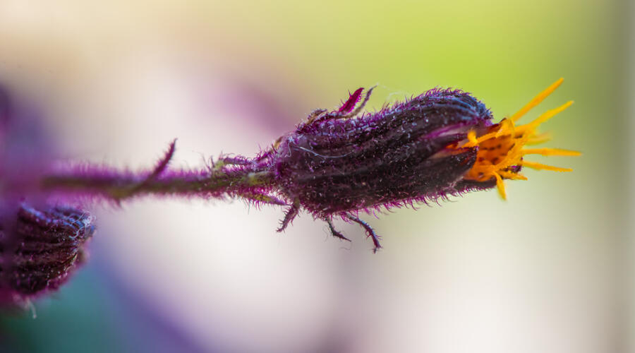 В комнатных условиях наибольшее распространение получила гинура оранжевая. Листья и побеги этого эффектного растения покрыты фиолетовыми ворсинками, от чего при ярком освещении кустик выглядит как бархатный. Именно этот вид называют фиолетовым бархатом, или бархатным цветком.