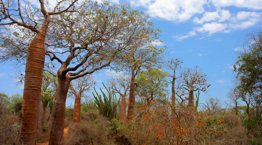 Большая часть растений принадлежит к эндемичному семейству Дидиереевые, объединяющему многолетние суккулентные деревья и кустарники, стволы и ветки которых снабжены шипами. Произрастают они в ксерофитных лесах и в колючих зарослях на песчаных, известковых и каменистых почвах. Ксерофиты — засухоустойчивые растения, имеющие жёсткие побеги.